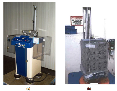 圖5.沖擊測試設(shè)備照片:(a)沖擊測試儀和(b)安裝塊