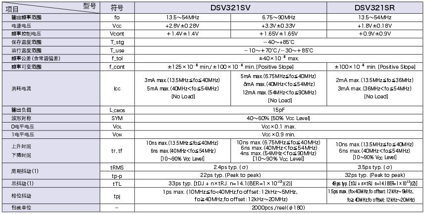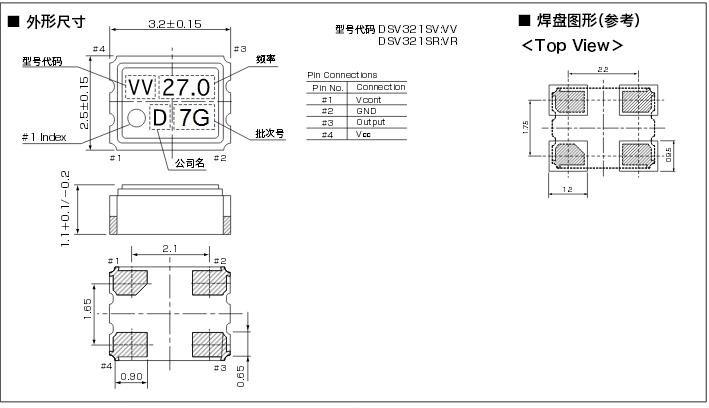DSV321SR振蕩器:3225尺寸、厚度1.1mm、小型SMD-VCXO.雖然小型但確保充足的可變量,頻率發(fā)生線性變化的模擬類型VCXO,低消耗電流.適用于DVD、數(shù)字TV、STB、ADSL、基干傳輸用等產(chǎn)品.頻率范圍可達(dá)13.5~54MHZ.屬于工業(yè)級(jí)晶振.可耐高溫,經(jīng)過(guò)專業(yè)檢測(cè)認(rèn)證屬于無(wú)鉛環(huán)保產(chǎn)品. 2016、2520、3225、5032系列貼片晶振成為了市場(chǎng)的主流尺寸.