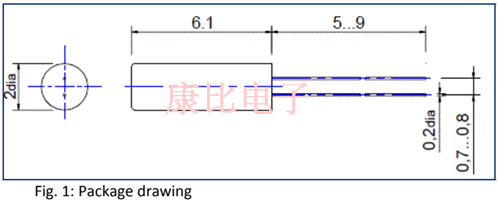 直徑僅為2mm的微型溫度傳感器晶體RKTV206允許高分辨率的溫度精確測量.這是一種特殊設計的32.768K音叉晶體,諧振頻率在32kHz至36kHz范圍內(nèi),溫度系數(shù)約為-51.8ppm/K@25℃.對于參考晶體RKOV206,通過使用外差原理,總溫度系數(shù)可以增加>50倍.