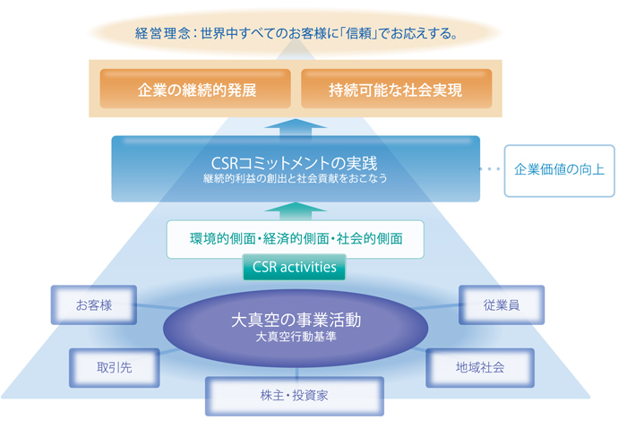 我們遵守法律,法規和精神,通過總是自覺與地球環境和諧的企業活動,我們的目標是通過建立持續的利潤為社會做出貢獻. 實施三項信托的行為標準