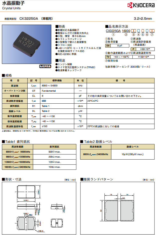 | CX3225GA16000D0PTVCC | CX3225GA | 16MHz | -40°C ~ 150°C | 2-SMD, No Lead |