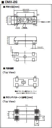 DMX-26晶體,32.768KHZ無源晶振,投影機晶體本產品具有小型,薄型,輕型的貼片晶振表面型音叉式石英晶體諧振器,產品具有優良的耐熱性,耐環境特性,可發揮晶振優良的電氣特性,符合RoHS規定,滿足無鉛焊接的高溫回流溫度曲線要求,金屬外殼的封裝使得產品在封裝時能發揮比陶瓷諧振器外殼更好的耐沖擊性.