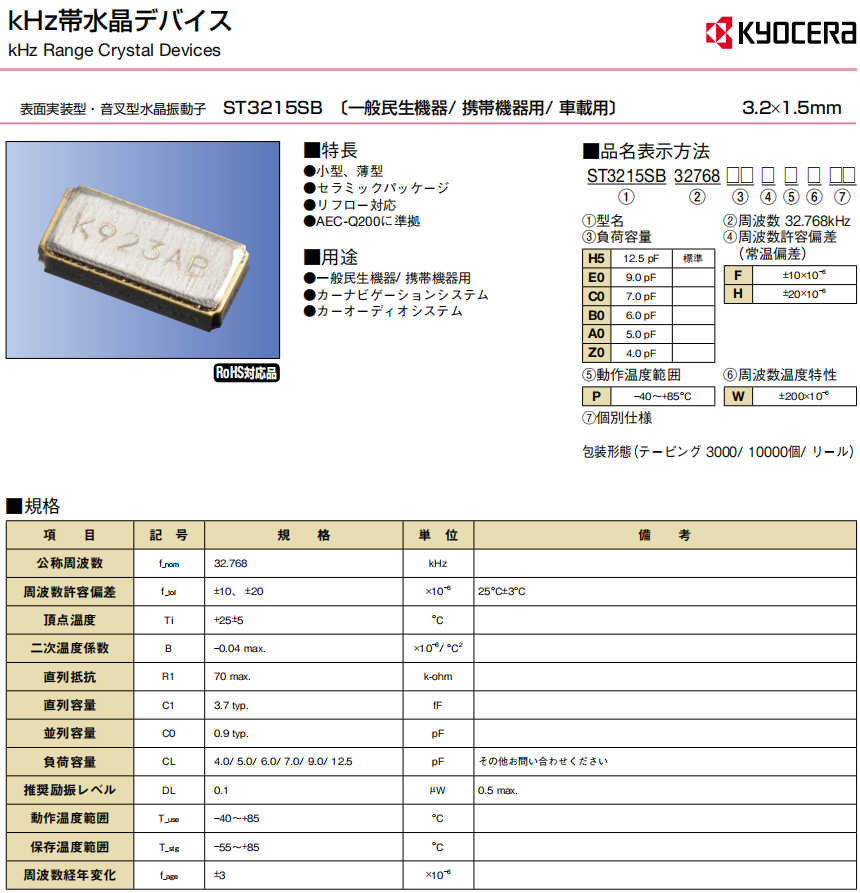 | ST3215SB32768H5HSZA1 | Kyocera晶振 | ST3215SB | 32.768kHz | -40°C ~ 125°C | 2-SMD, No Lead |
