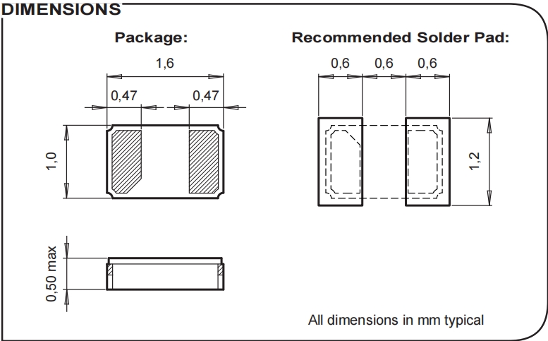 | Static capacitance typ. | C0 | 1.4 | pF | ||||||||||||||||