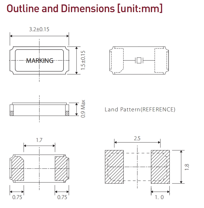 XTL721-S999-429,Siward希華晶振,6G智能計量晶振 尺寸圖
