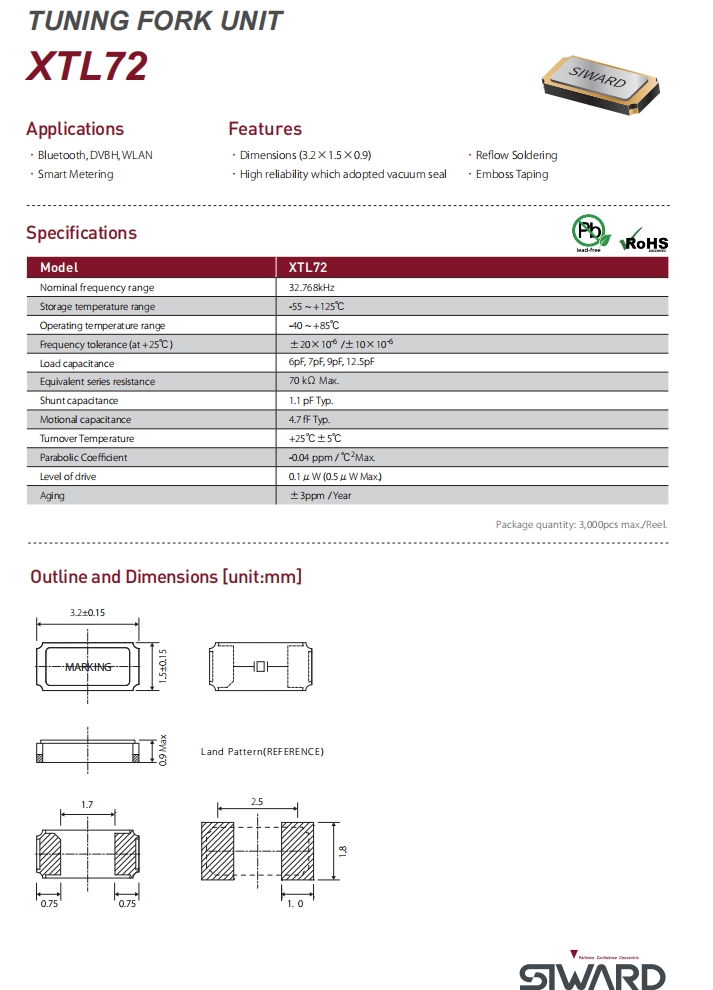 XTL721-S999-429,Siward希華晶振,6G智能計量晶振 參數表