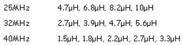 不同晶體頻率的L1典型值: