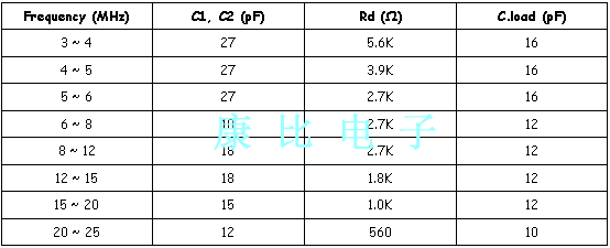 雜散電容可在2pF到6pF之間變化. 1. 當在C-MOS振蕩電路中使用時,電路圖中的Rd是必不可少的,以將驅動電平保持在規定值內并獲得穩定的振蕩頻率.