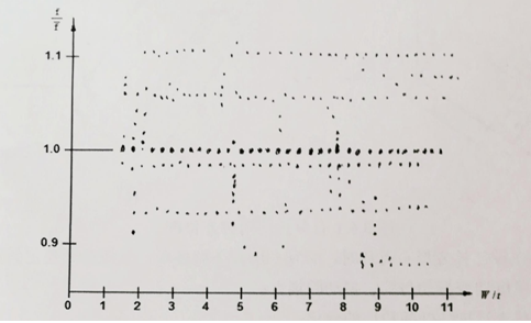 f—某一邊比下的頻率;f—邊比十分大的情況下的頻率;w—石英片的寬度;